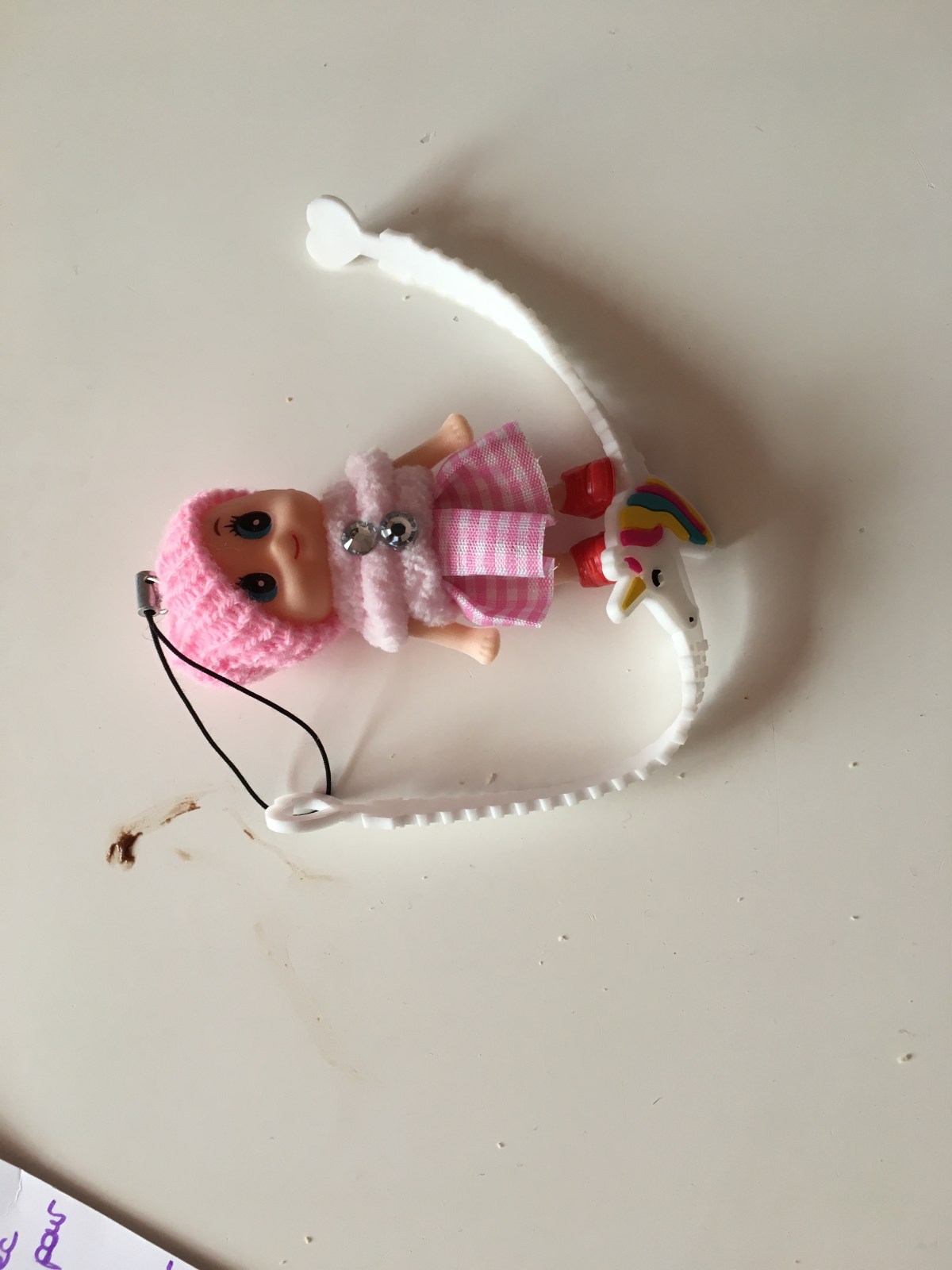 Une petite poupée trop mignonne et un très joli bracelet licorne (Camille a essayé de lui piquer d’ailleurs mais elle ne s’est pas laissé faire!).