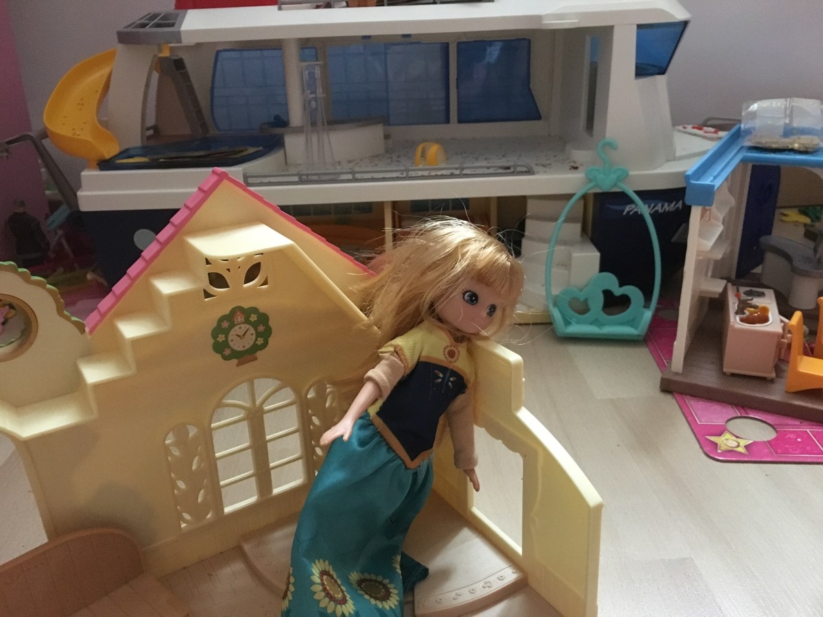 Nouvel environnement, nouvelle tenue pour Lottie devenue une princesse pour l’occasion dans sa jolie maison! J’adore observer les filles jouer, les écouter, elles ont une imagination débordante et surtout entrent très facilement dans de nouveaux personnages en fonction des idées de chacune! Elles sautent du coq à l’âne c’est fou!