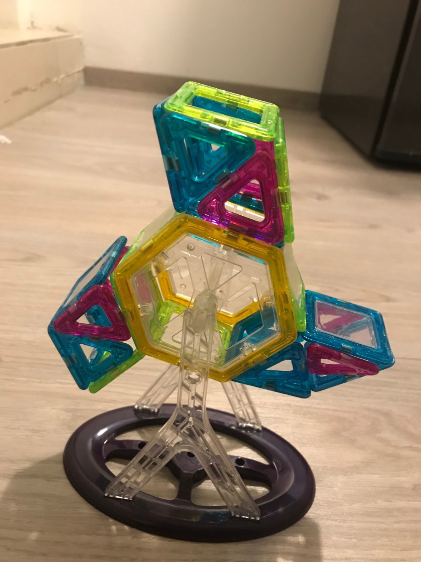 Comme la plupart des enfants je pense, mes trois loulous adorent les jeux de construction pour laisser libre court à leur imagination débordante. Mais parfois, les jouets du marché imposent des contraintes pour réussir à fabriquer le modèle proposé ou alors s’écroule facilement, ce qui a tendance à énerver et décourager mes filles! Maël qui est très minutieux adhère à tous lui mais aime bien un peu plus de facilité de temps en temps et c’est dans ces moments-là que les blocs de construction magnétiques EASY FIDGET font fureur!p