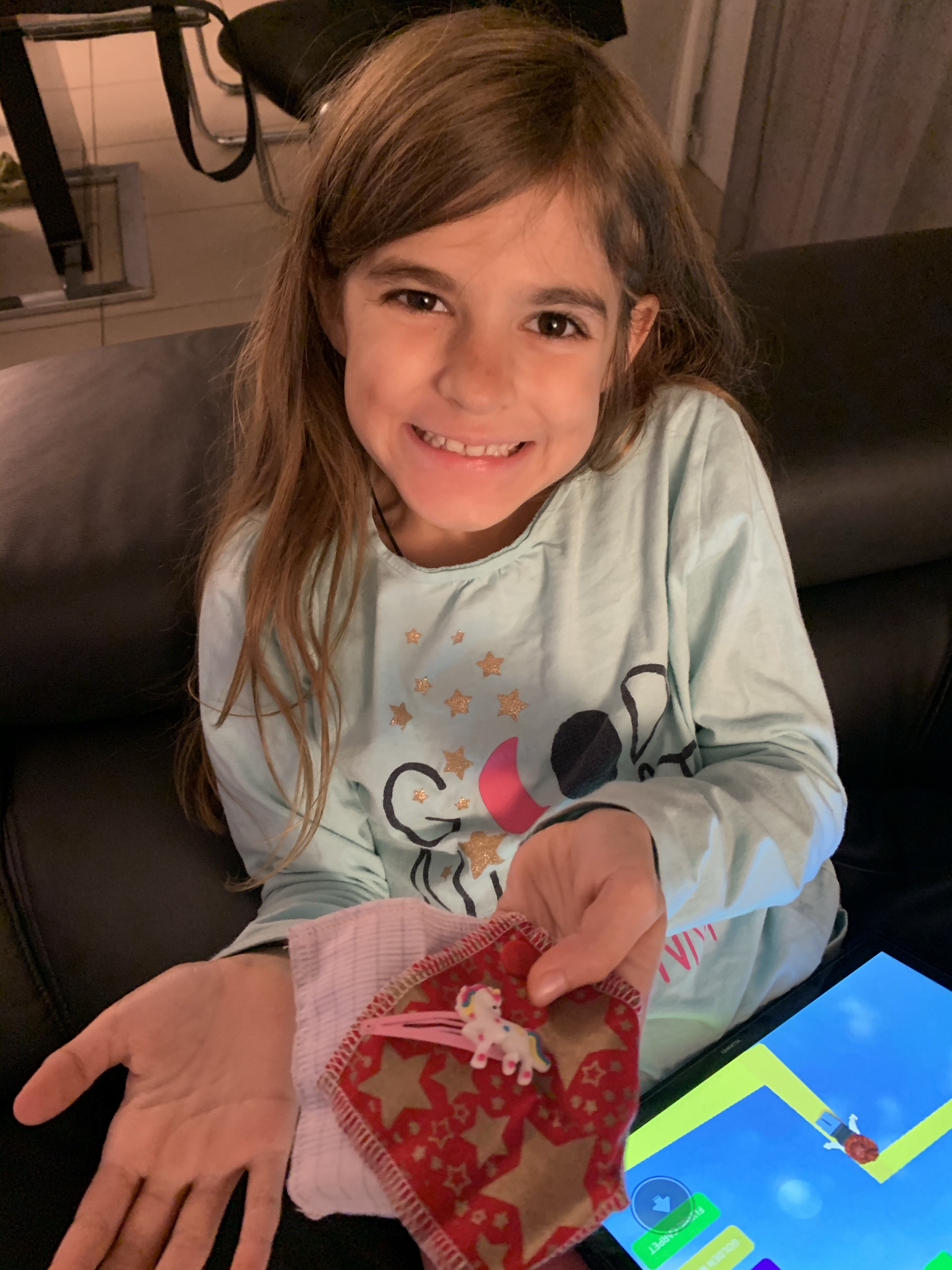 Maintenant que nous vous avons bien mis l’eau à la bouche avec les photos et ces quelques informations, place à la découverte des coups de cœur des loulous (même si en réalité il a été difficile pour eux de choisir car ils ont tout aimé!). Commençons avec Anaïs qui a particulièrement apprécié la peluche Zaminours (qui existe en gris et couleur crème) accompagnée d’un sachet de 125g de délicieux chocolats (dont un père-noël que les loulous ont rapidement dévoré!). Il faut dire qu’elle est super mimi et toute douce! On a envie de lui faire de gros câlins!