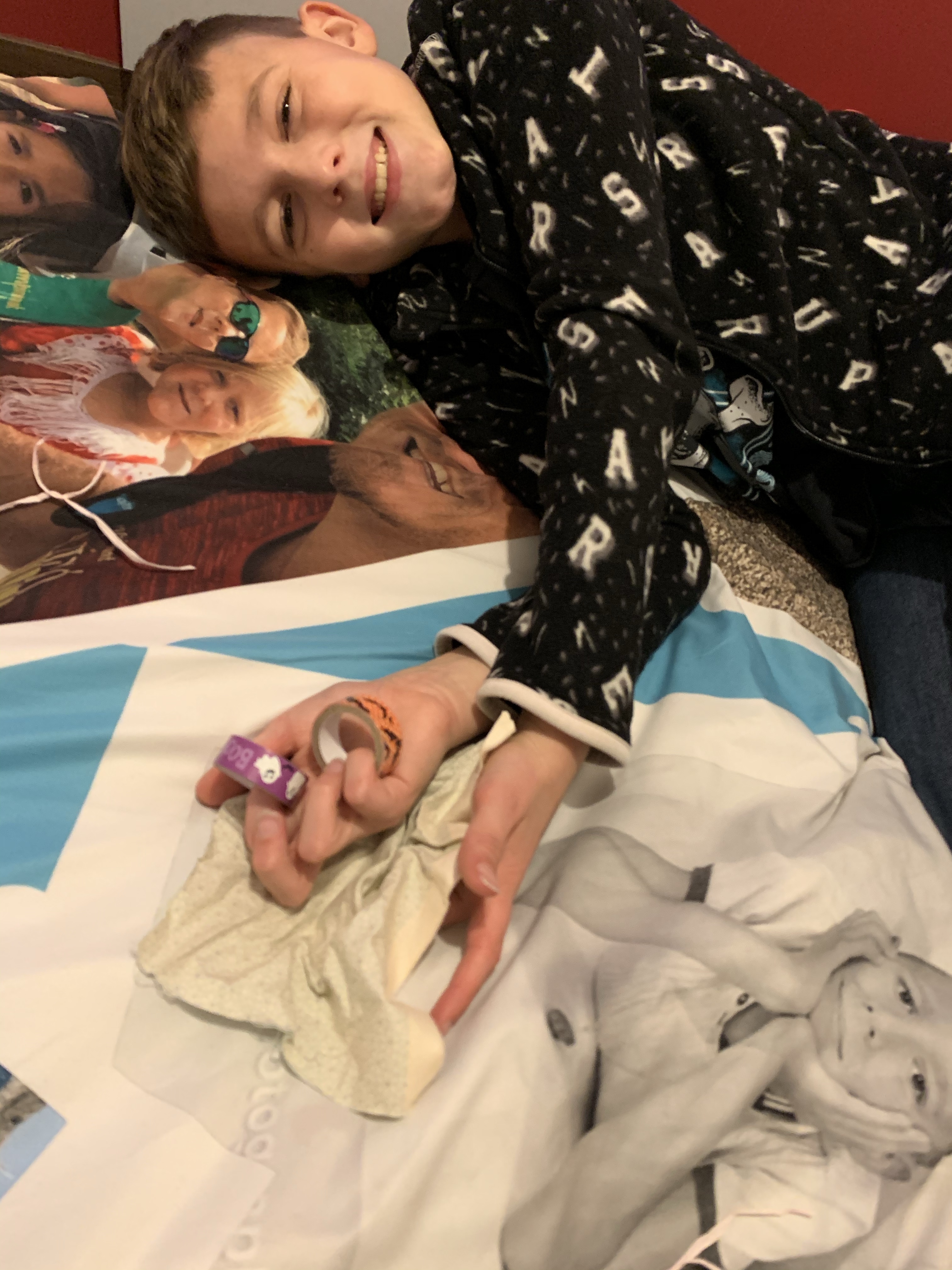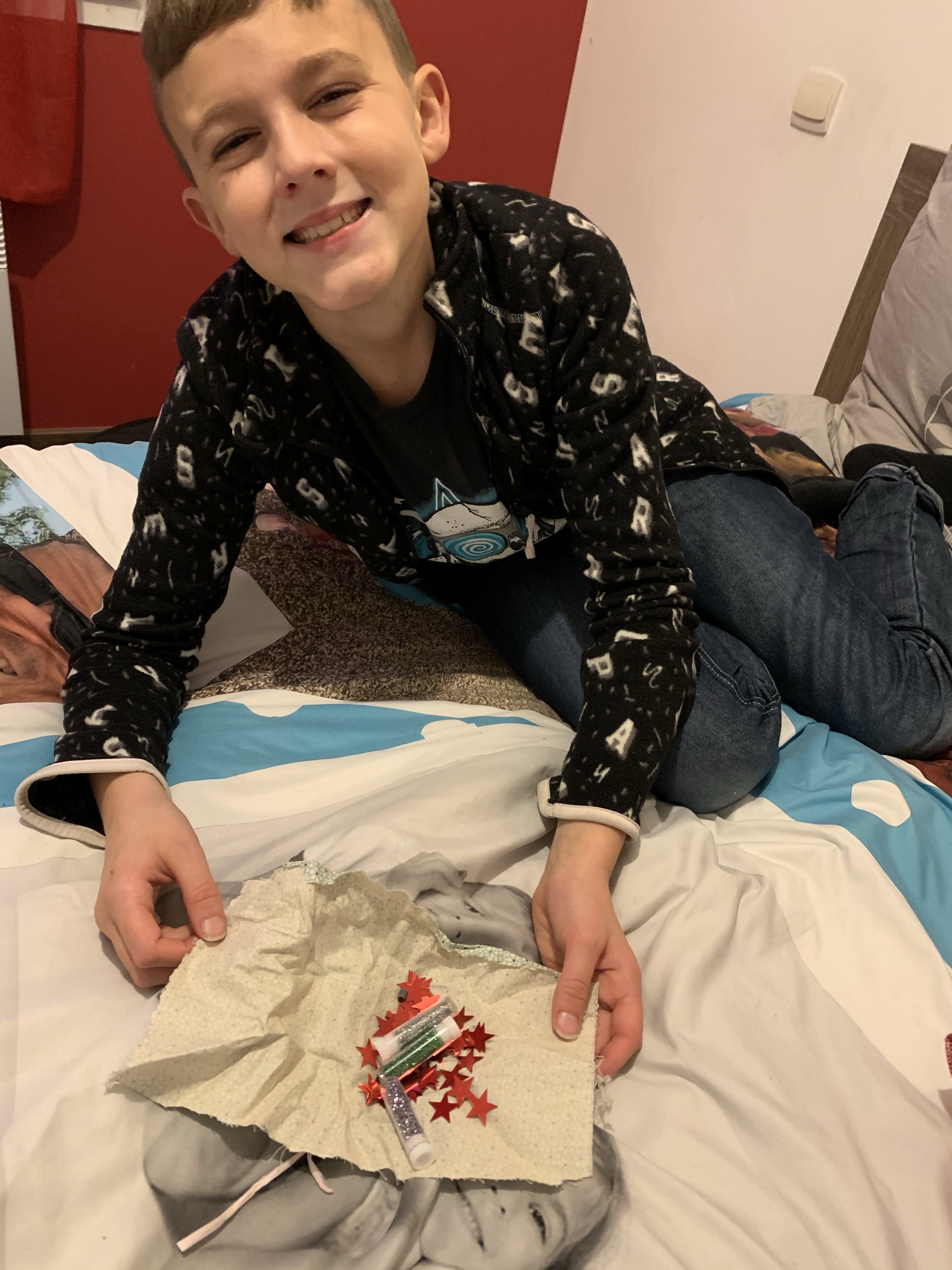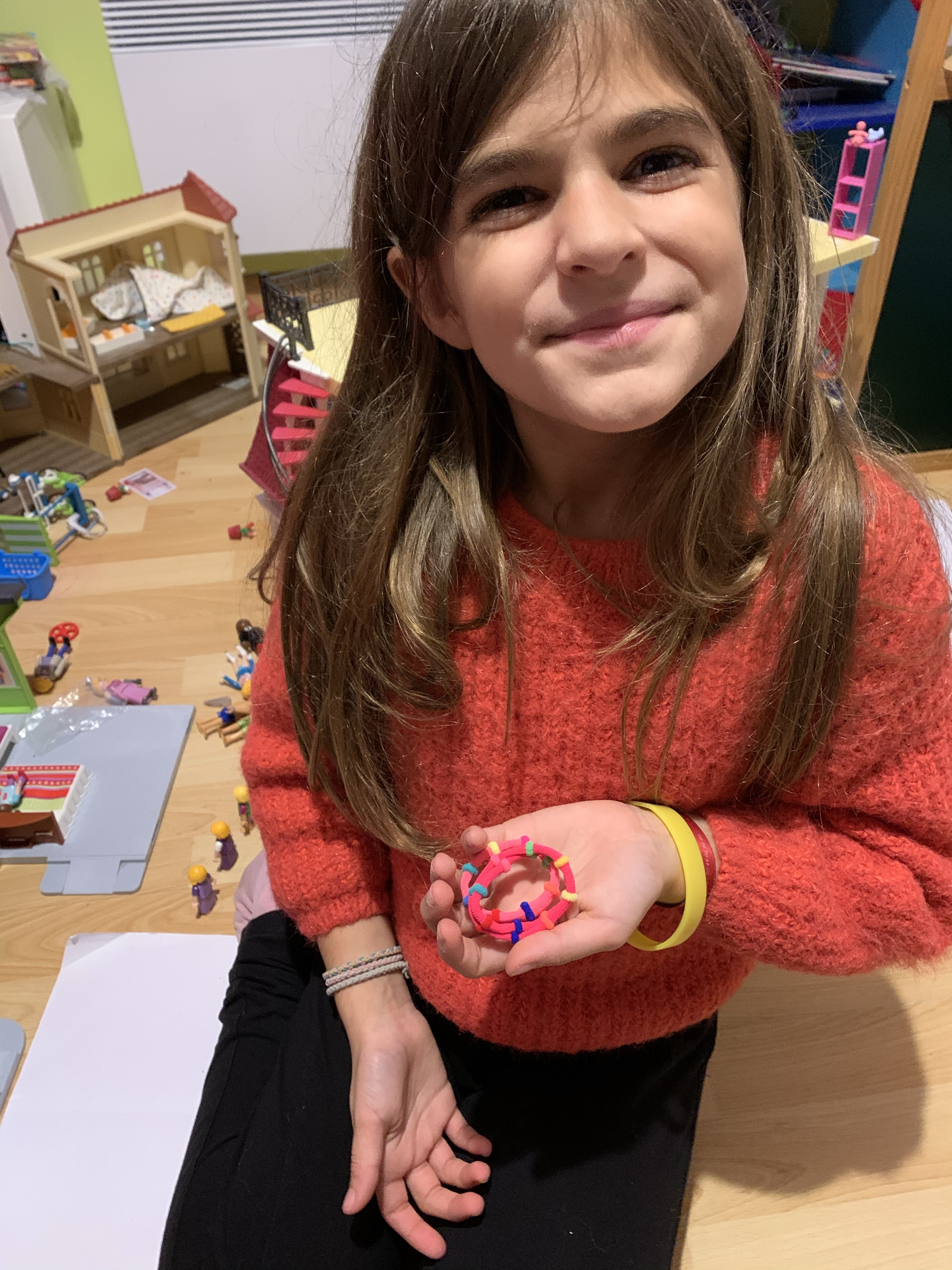 Passons à présent à Maël qui a aussi choisi difficilement les deux produits de la sélection qui lui plaisaient le plus. Pour commencer, il a craqué sur le bracelet peluche renne parce qu’il le trouve super doux et adorable (il existe aussi en version renard et panda). Depuis, il l’a accroché au bord de son lit et il veille donc sur son sommeil! Et en prime, comme pour le petit ours d’Anaïs il est accompagné de son sachet de 75g de délicieuses bouchées en chocolat aux céréales.