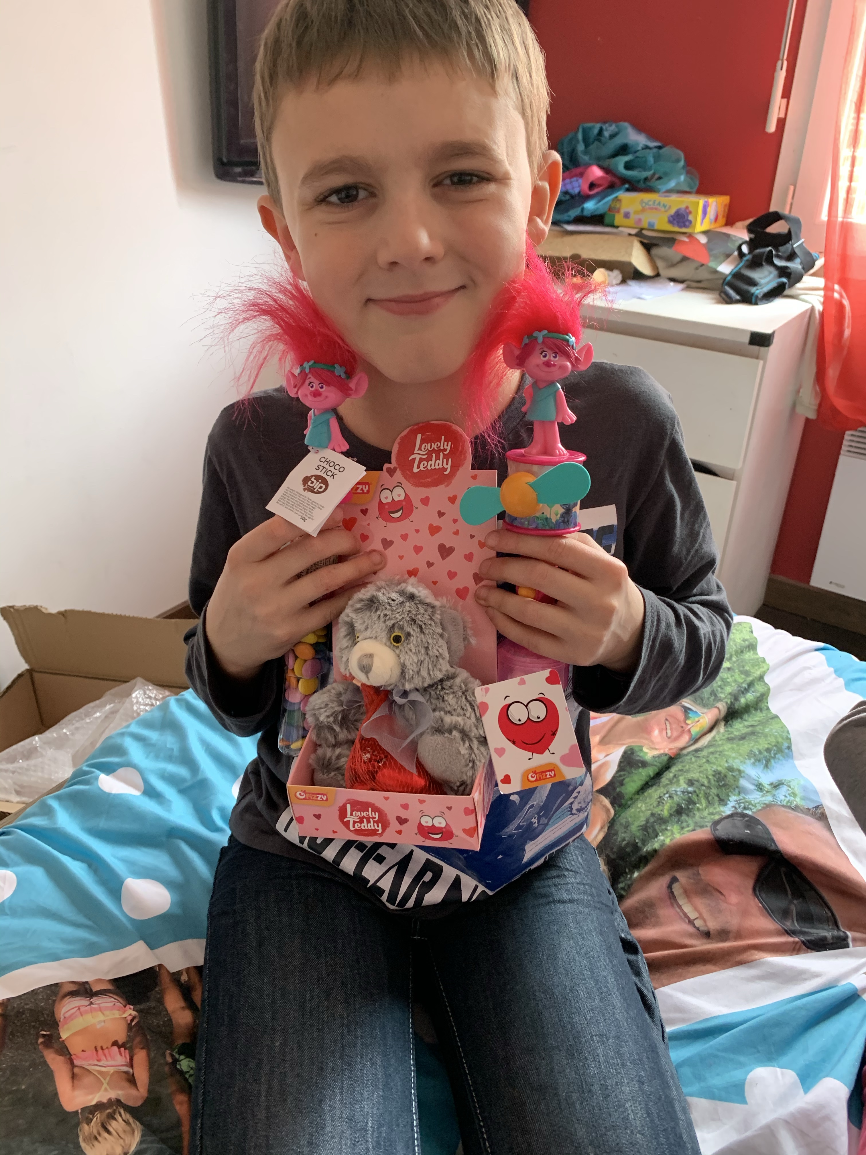 Camillou a choisi cette petite mallette de gourmandises Barbie et de la barbe à papa Miraculous, Maël, lui, a voulu le ventilateur et le globe lumineux Reine des Neiges (et oui, il adore les personnages de ce dessin animé et ne s’en cache pas et il a bien raison!) et Anaïs qui elle n’aime pas les bonbons mais adore le chocolat s’est fait plaisir avec des petits œufs en chocolat de la collection Mr & Mme sous deux formats différents. Ils ont hâte de recevoir mes petits gourmands!
