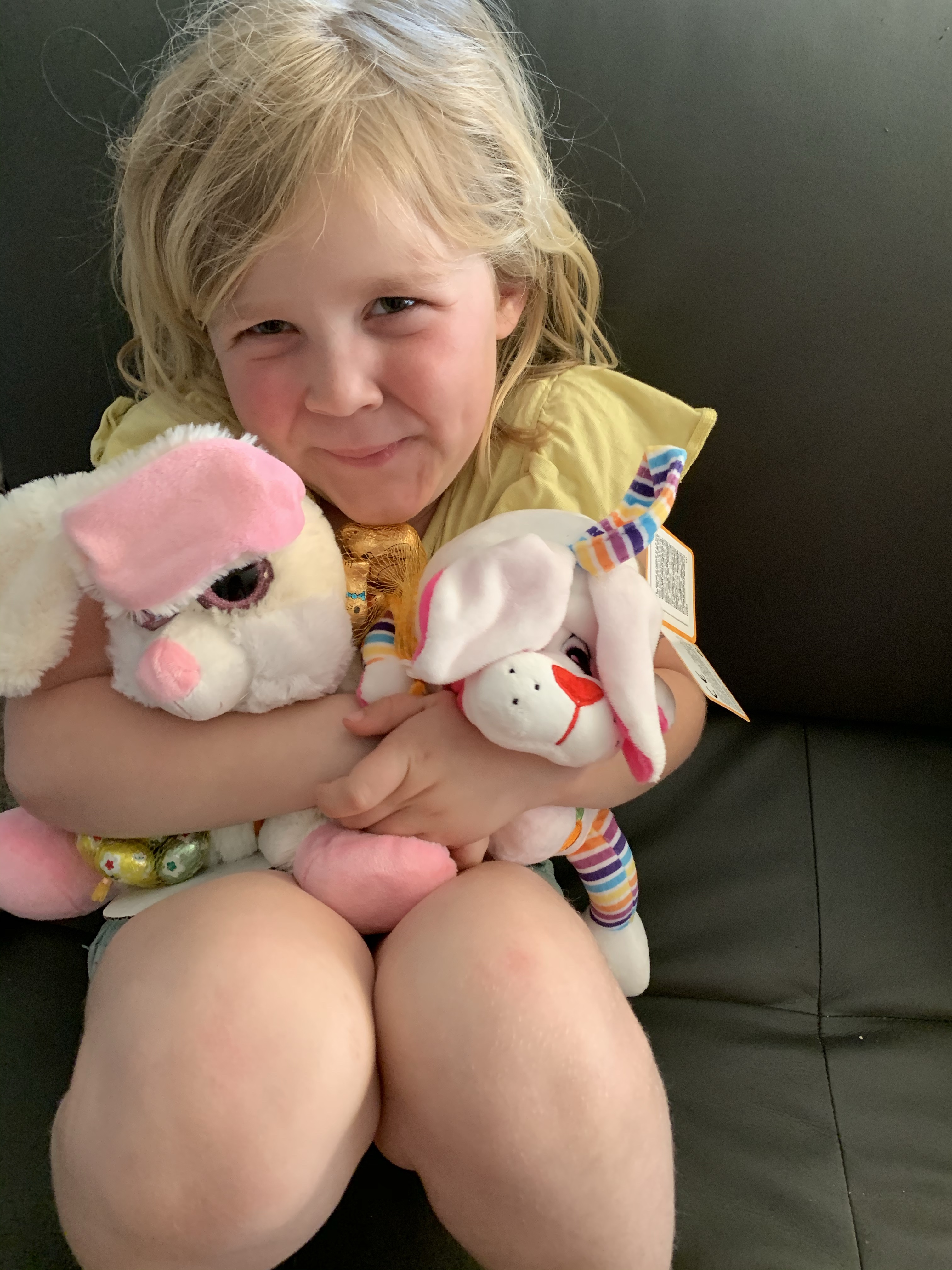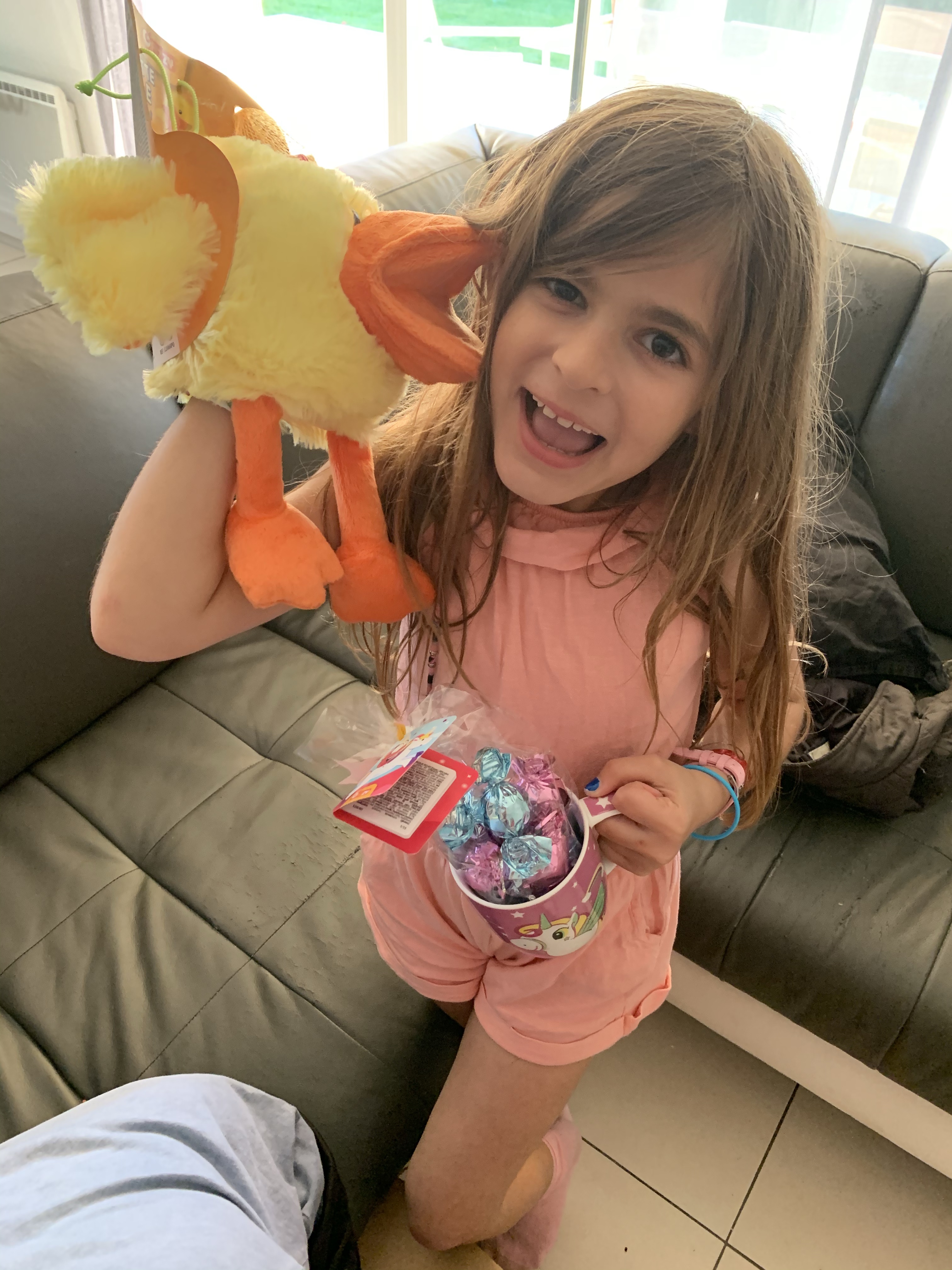 On arrive presque au bout de ce colis vraiment bien garni et il est temps de vous parler de l’autre très gros coup de cœur des loulous (un peu moins le mien, vous allez vite comprendre pourquoi, lol): il s’agit d’une marionnette de Pâques qui chante! Alors oui c’est super mignon et amusant mais les enfants aiment tellement qu’ils la feraient chanter du matin au soir! Et je dois dire que c’est un peu énervant à force, mdr… Mais on a trouvé un bon compromis, ils la font fonctionner dans leur chambre ou dans le jardin pour me préserver. Elle aussi était en prime accompagnée de ses petits chocolats pour satisfaire les papilles de mes gourmands.