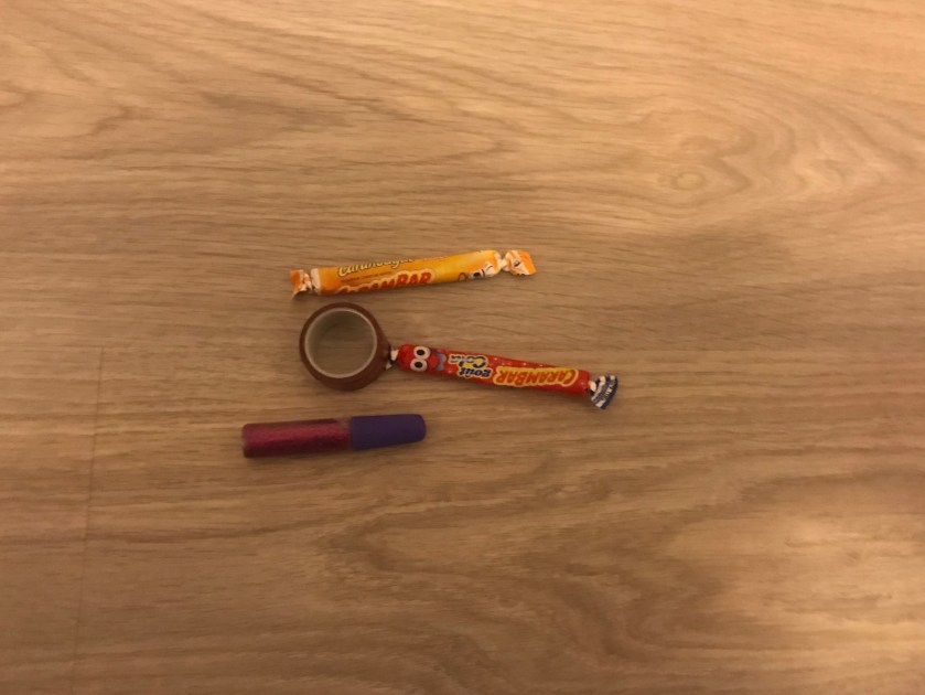 Pour augmenter sa collection de matériel pour ses créations, un rouleau de making tape et de superbes paillettes (ça je vous garantis que c’est toujours un succès). Et puis quand on a bien bossé, quelques douceurs font toujours du bien, alors les Carambar sont bien appréciés aussi!