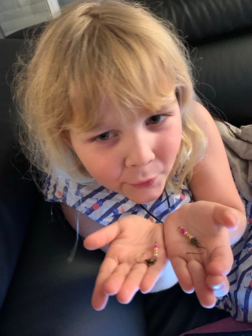 Nous allons terminer avec miss Camille qui n’a pas été en reste non plus avec les petites surprises qu’elle a pu découvrir chaque matin… Pour commencer de très jolies boucles d’oreilles qui pendent, ce sont celles qu’elle préfère alors forcément elle était ravie ma petite puce!