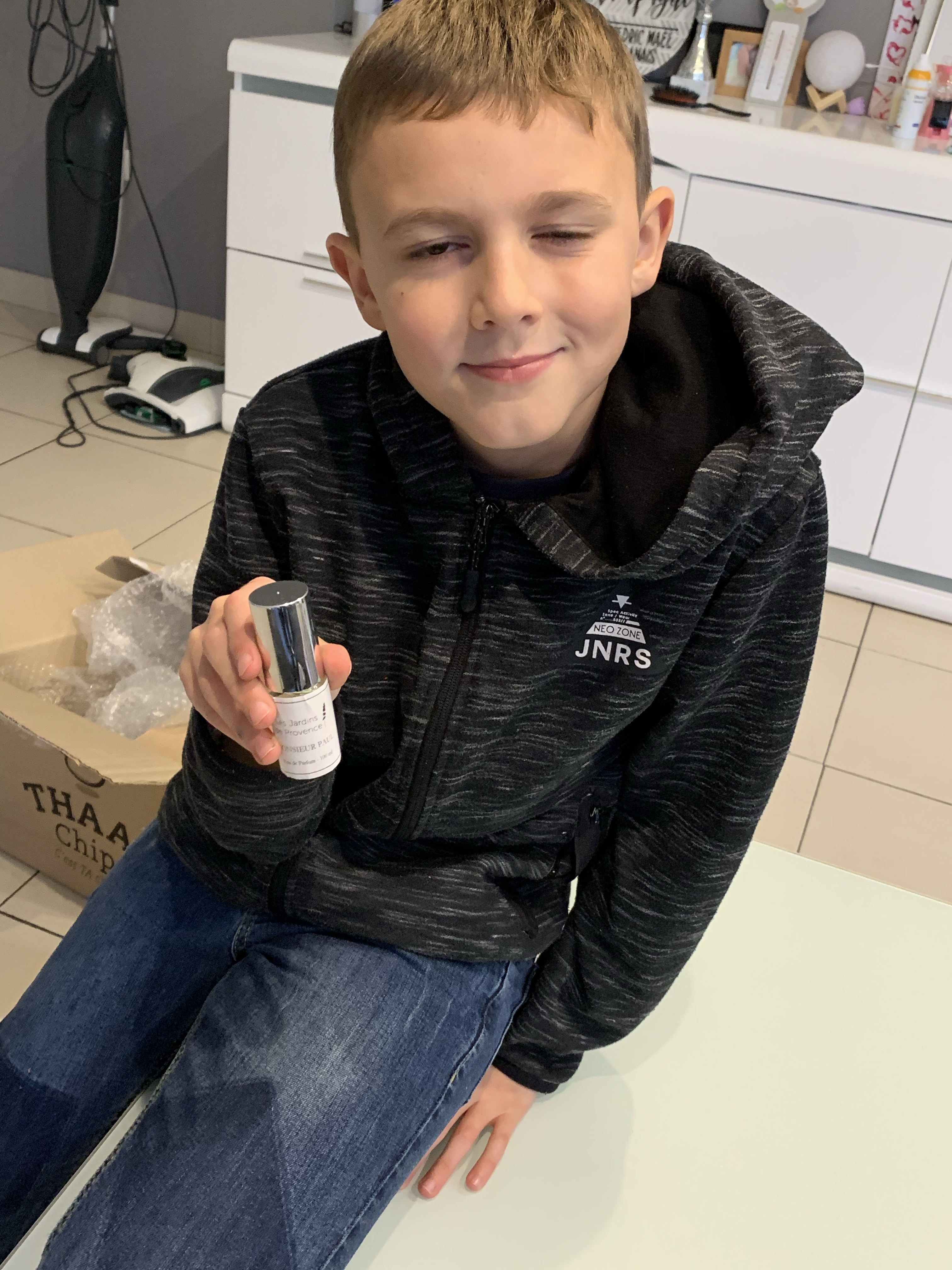 Et pour le deuxième homme de la maison, c’est Mr Paul qui a sa préférence: un parfum plus discret comme peut l’être mon grand garçon tendre, sensible et romantique. Un parfum relativement léger et classique à base de fougères, de santal et de vétiver. Et je pense qu’il n’est pas le seul à l’apprécier puisque la première fois qu’il l’a mis, il est rentré en me disant: »la maîtresse m’a dit que je sentais bon! », lol.