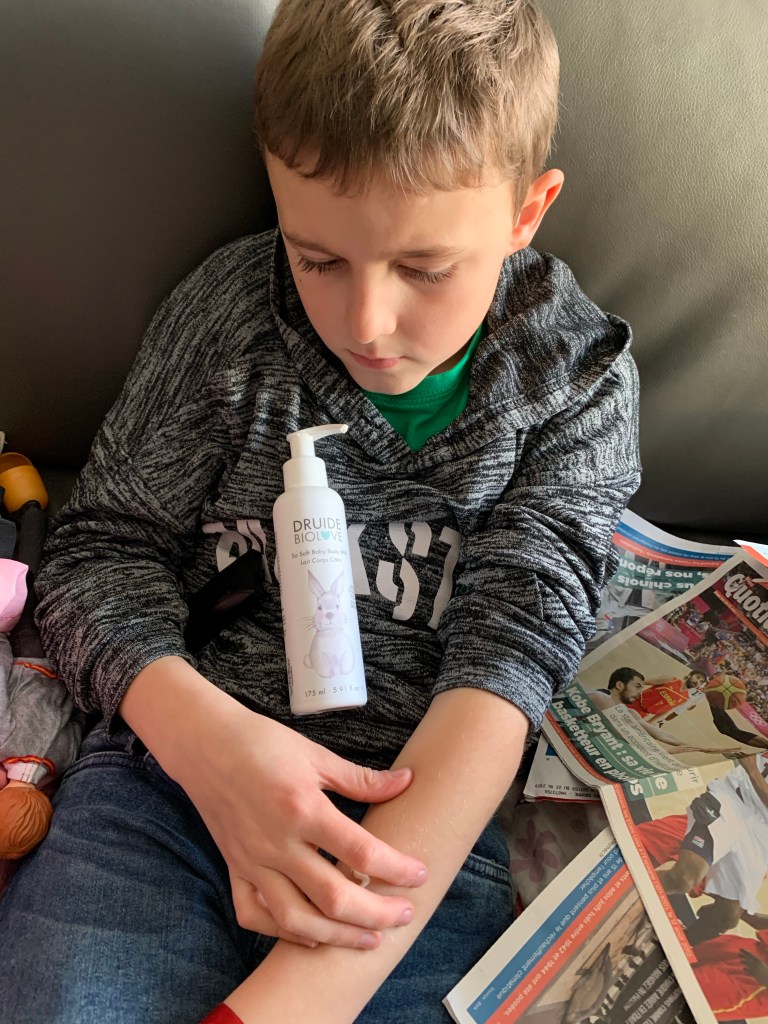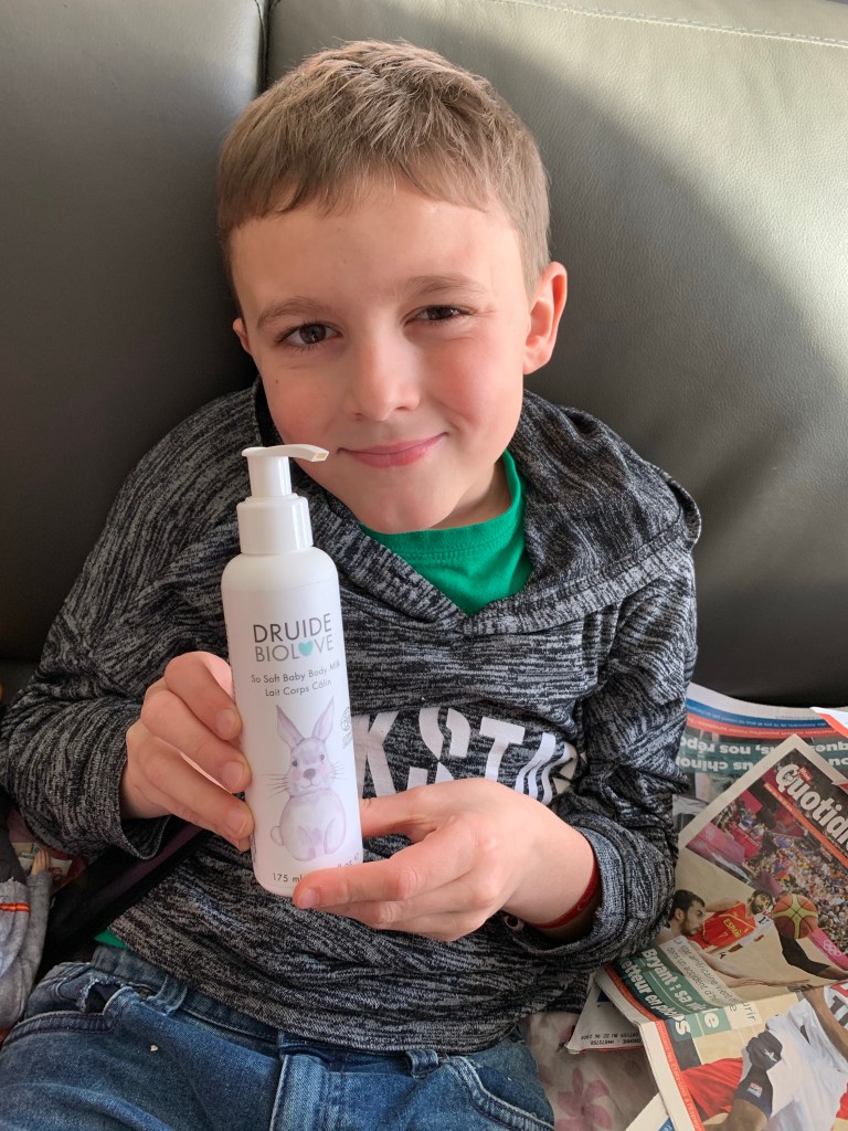 Celui qui est totalement conquis et qui a adopté ce lait à 2000% (il aimerait d’ailleurs être le seul à pouvoir l’utiliser le filou), c’est Maël! Déjà il adore l’odeur (et je dois dire que je le rejoins sur ce point, j’aime beaucoup ce léger parfum de guimauve), mais en plus il le trouve très efficace. Lui qui a souvent des rougeurs ou des démange voit immédiatement la différence lorsqu’il l’utilise. D’ailleurs, il garde désormais le flacon près de son lit et s’en passe quasiment tous les soirs. En général après il m’appelle et il me dit « tu as vu maman comme j’ai la peau douce? ».