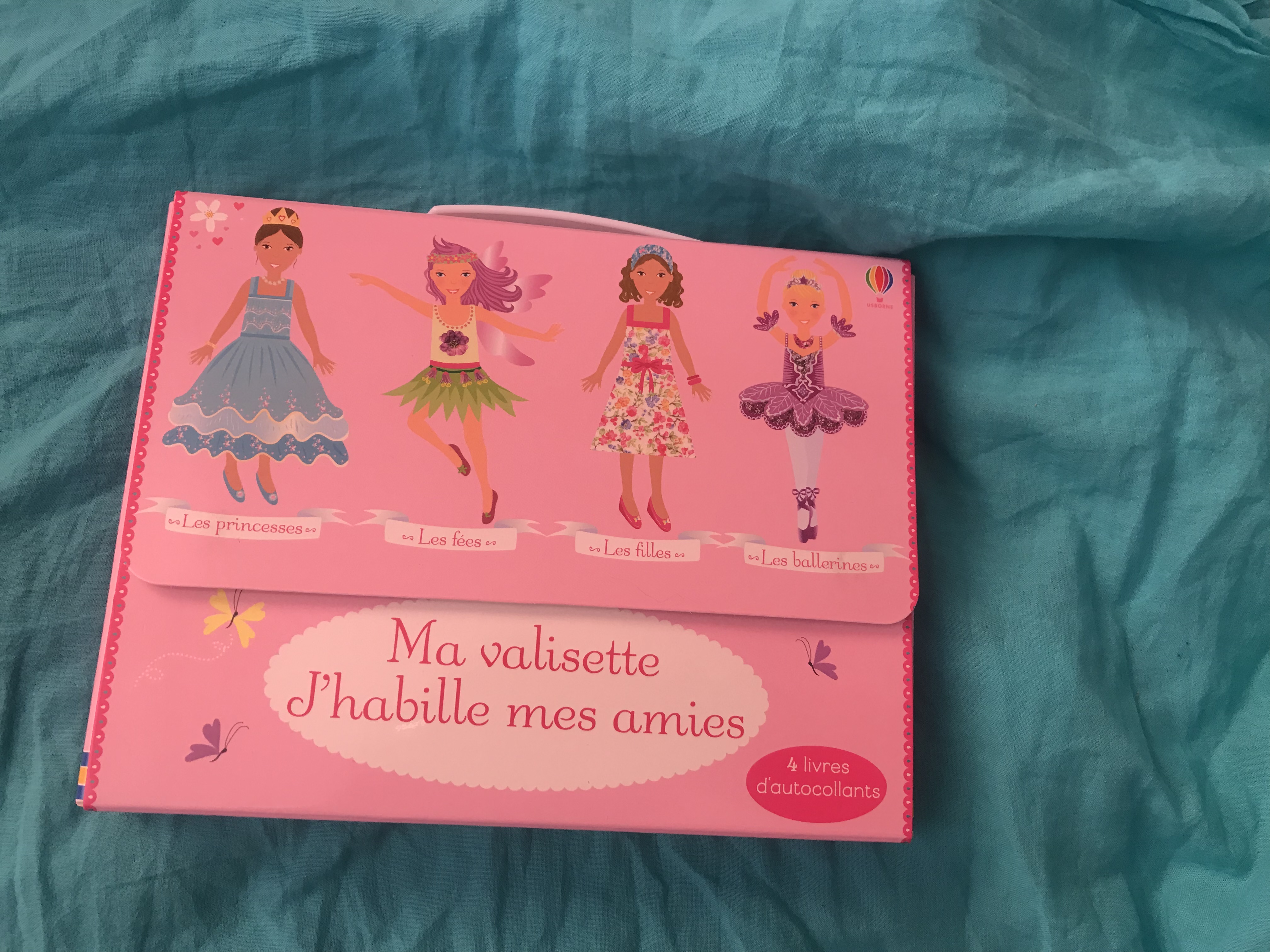 Cette valisette regroupe plusieurs titres déjà parus dans la collection « j’habille mes amies »mais en format de poche cette fois-ci, idéal pour les voyages en voiture par exemple. Et puis comme ça, les enfants ont la joie de découvrir plusieurs thèmes dans une seule valisette: ici les fées, les princesses, les ballerines et les filles.