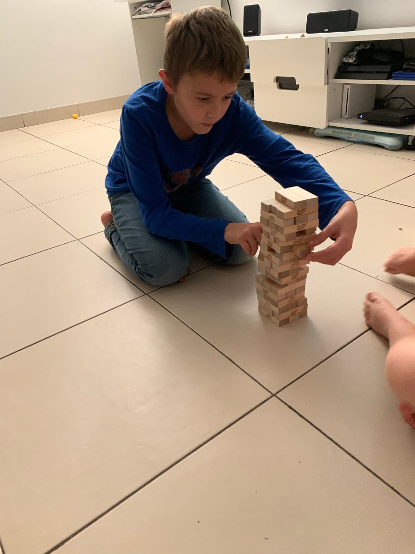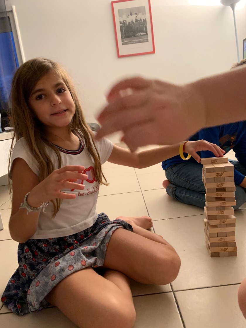 Le but du jeu est de déplacer les blocs un à un (avec une seule main) pour les reposer au sommet de la tour sans la faire tomber! Et je vous garantis que ce n’est pas aussi facile qu’il n’y parait! Et surtout au moment où tout s’effondre en général c’est fou rire général garanti!