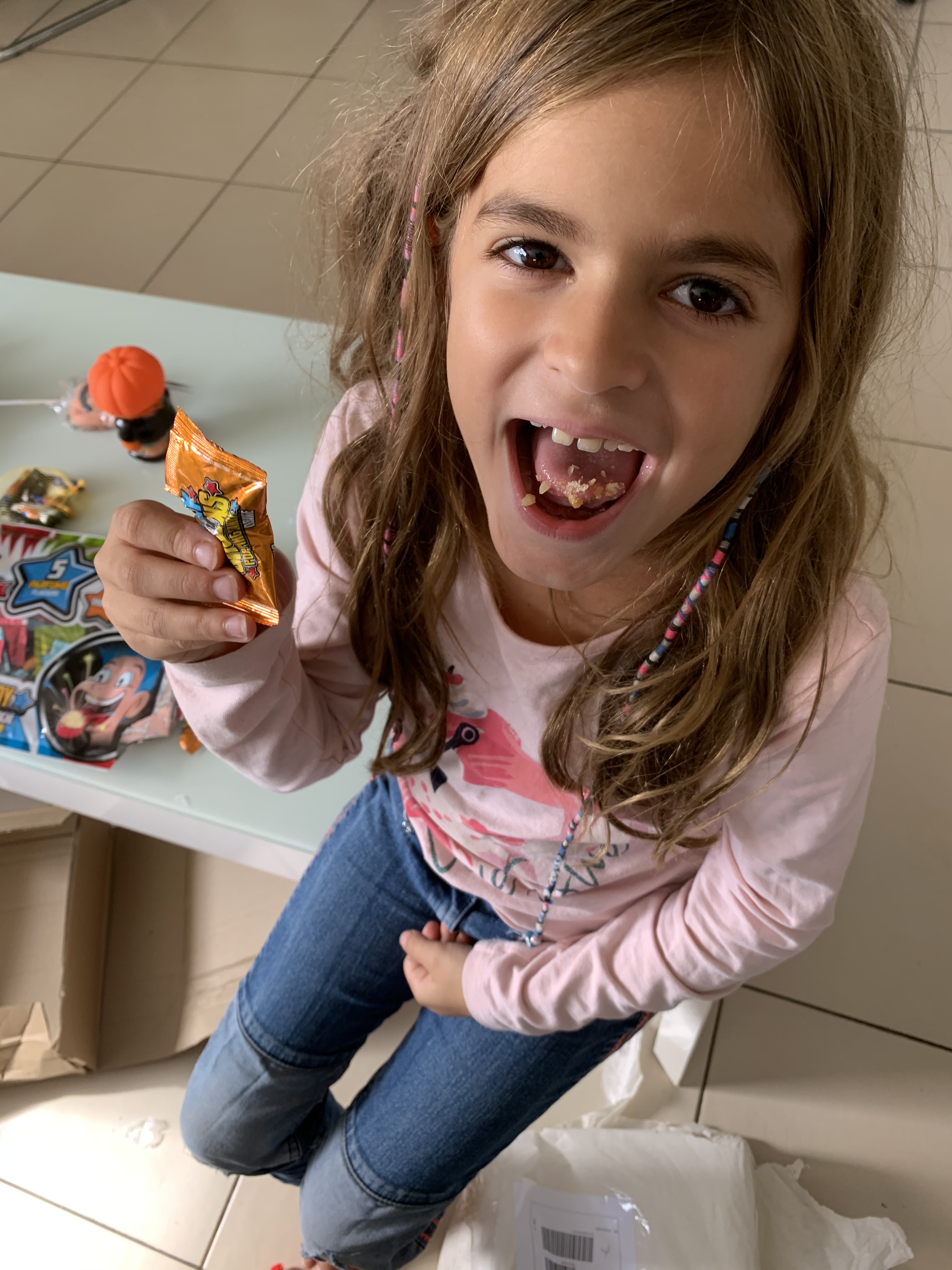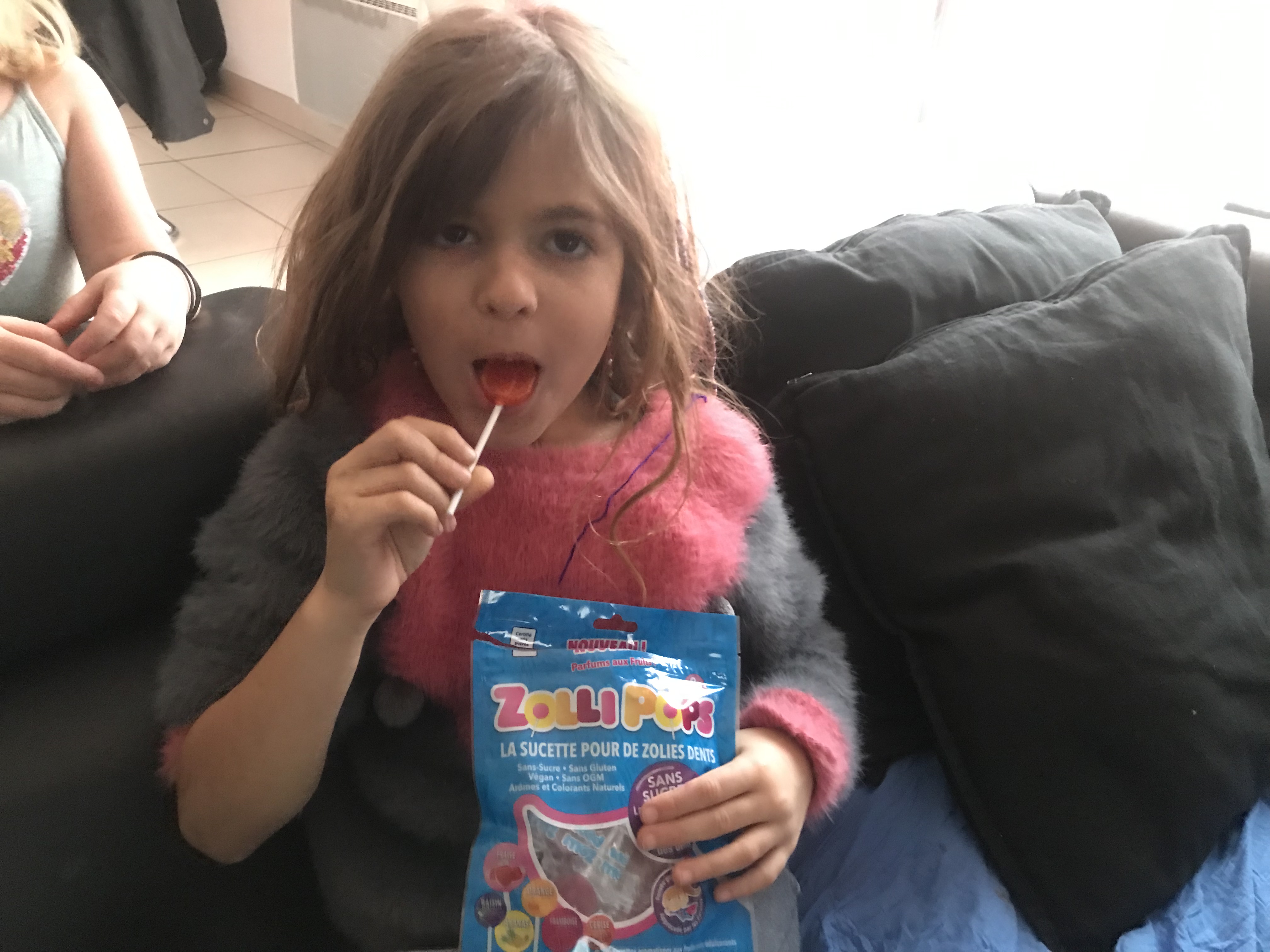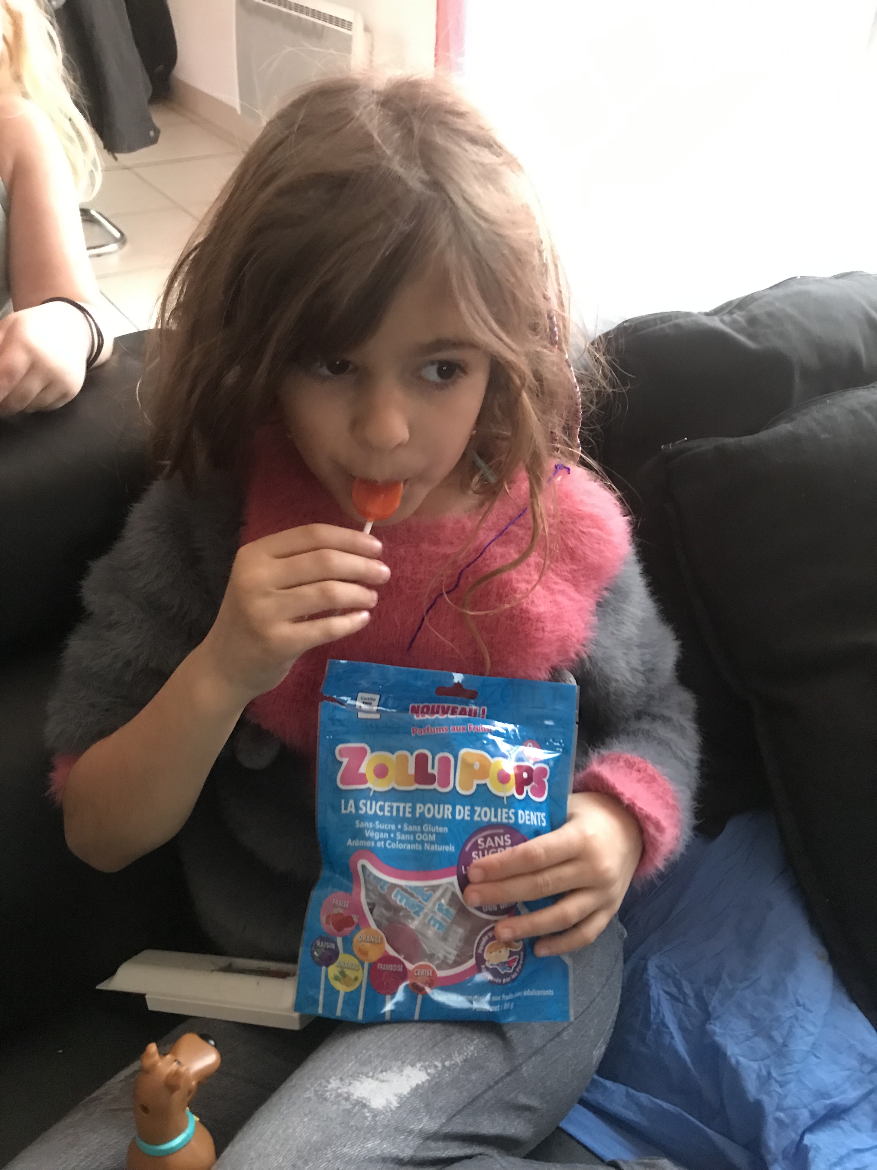 Sitôt reçu, sitôt essayé et approuvé par les enfants qui adorent ce côté pétillant! Et ça a réveillé plein de souvenirs en moi! En effet, quand j’avais leur âge, j’adorais ce genre de bonbons et je me souviens des fou-rire que l’on partageait avec les copains en les mettant sur nos langues et en les tirant pour les entendre pétillant, exactement comme Camille sur la photo! J’adore ces moments où je me rends compte que malgré les années, beaucoup de choses demeurent malgré tout dans les cours de récréation. Et ça fait du bien dans notre monde où tout va toujours trop vite.