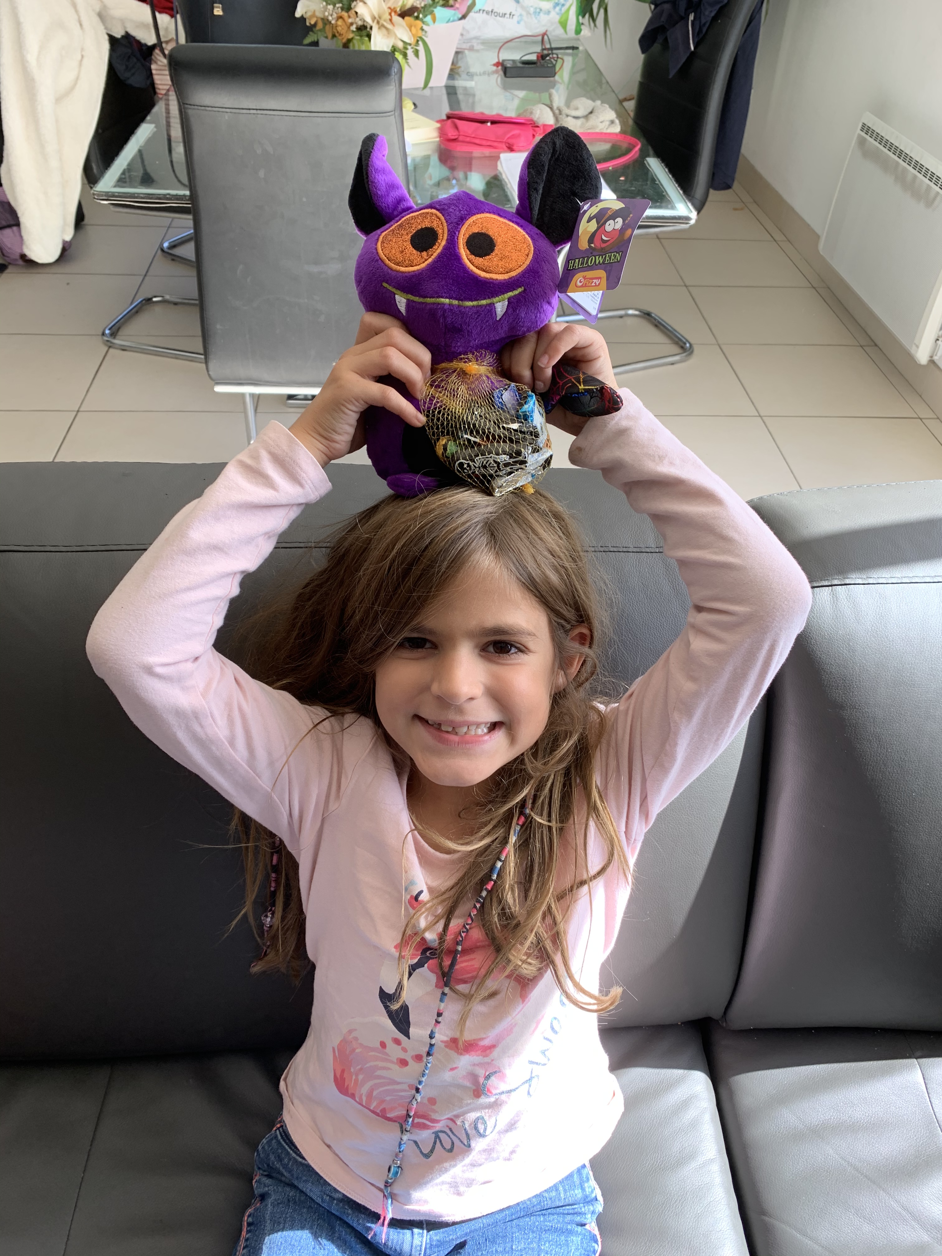 On termine avec le produit qui déchaîne toutes les passions à la maison: la peluche toute douce aux couleurs d’Halloween garnie de petits chocolats. Elle a tout pour combler mes enfants: elle est « trop chou » comme ils disent, donne envie de lui faire des câlins et en plus tout le monde a succombé aux petits chocolats qui l’accompagnaient.