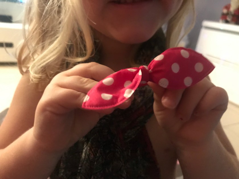 Et pour compléter cette joie, un adorable élastique « de Minnie » comme elle dit qui lui a forcément beaucoup plu vu que c’est son héroïne préférée!