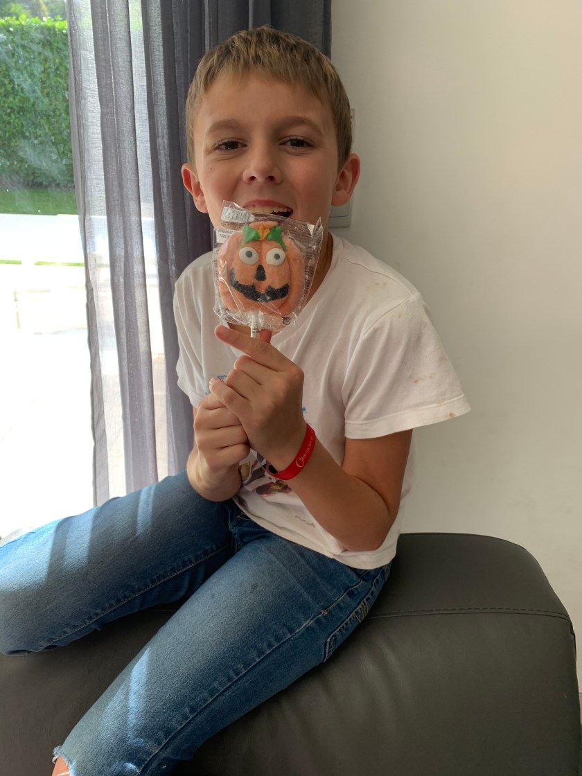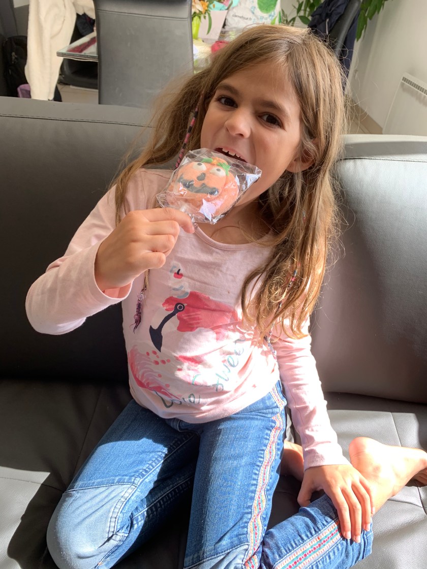Autre friandise, autre coup de cœur qui a fait l’unanimité: la sucette guimauve en forme de citrouille! On a tous craqué sur son look, elle est juste trop mignonne! Du coup, pour le moment, personne n’a encore osé croquer dedans, ils ont envie de la garder intacte en décoration! C’est assez rare pour le souligner que mes deux gourmands ne succombent pas à la tentation d’une sucette! Comme quoi la marque a bien réussi son pari d’allier les confiseries et les « jouets ».