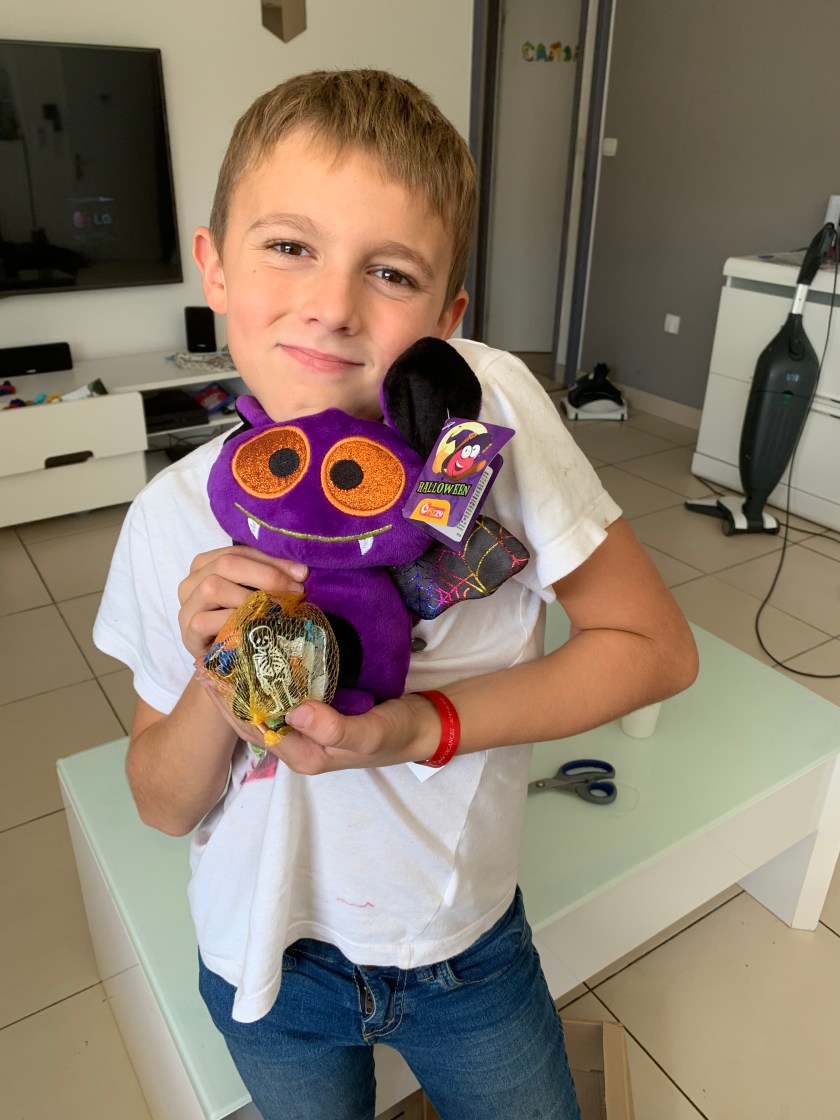 On termine avec le produit qui déchaîne toutes les passions à la maison: la peluche toute douce aux couleurs d’Halloween garnie de petits chocolats. Elle a tout pour combler mes enfants: elle est « trop chou » comme ils disent, donne envie de lui faire des câlins et en plus tout le monde a succombé aux petits chocolats qui l’accompagnaient.