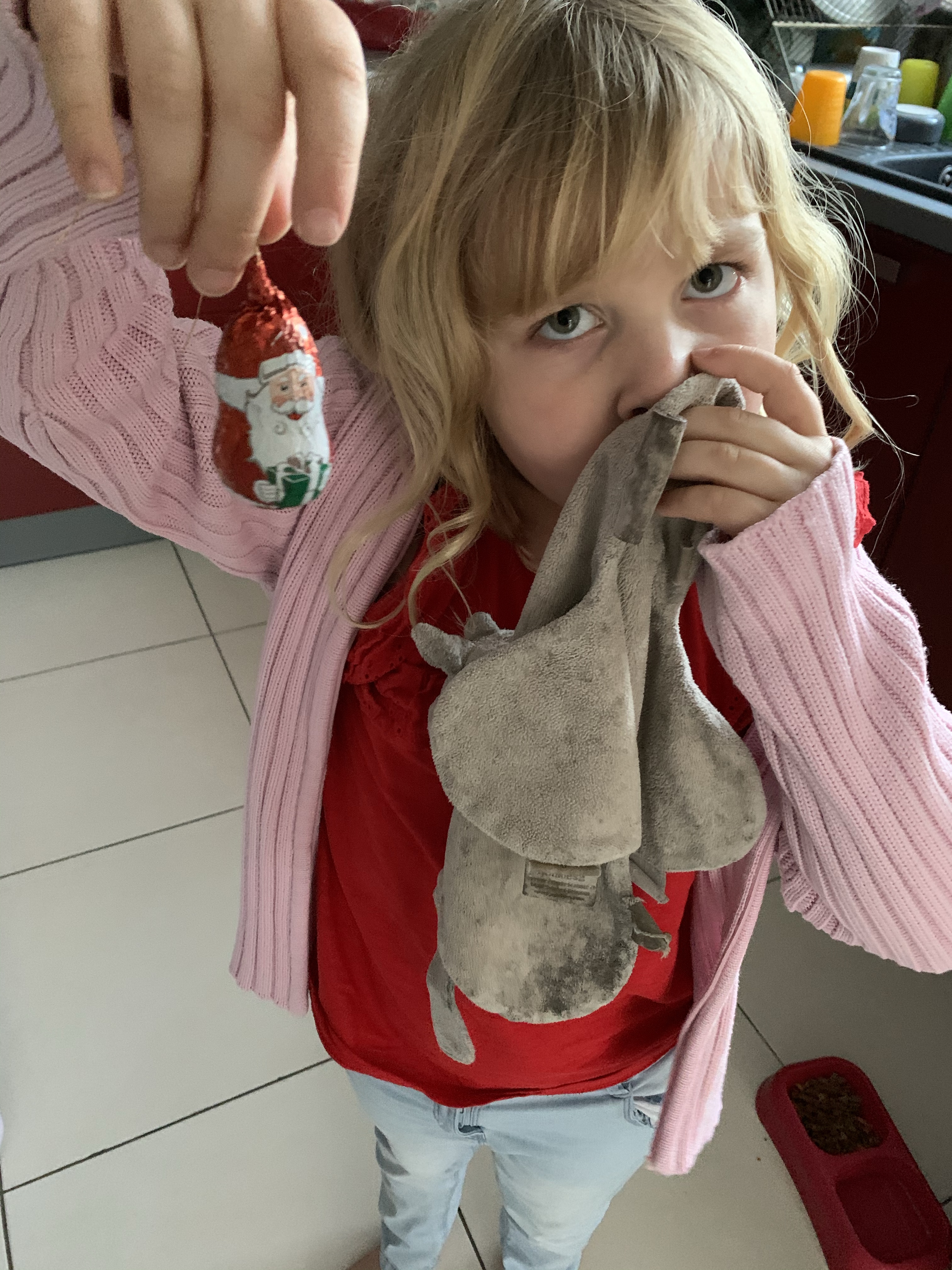Maintenant que nous vous avons bien mis l’eau à la bouche avec les photos et ces quelques informations, place à la découverte des coups de cœur des loulous (même si en réalité il a été difficile pour eux de choisir car ils ont tout aimé!). Commençons avec Anaïs qui a particulièrement apprécié la peluche Zaminours (qui existe en gris et couleur crème) accompagnée d’un sachet de 125g de délicieux chocolats (dont un père-noël que les loulous ont rapidement dévoré!). Il faut dire qu’elle est super mimi et toute douce! On a envie de lui faire de gros câlins!