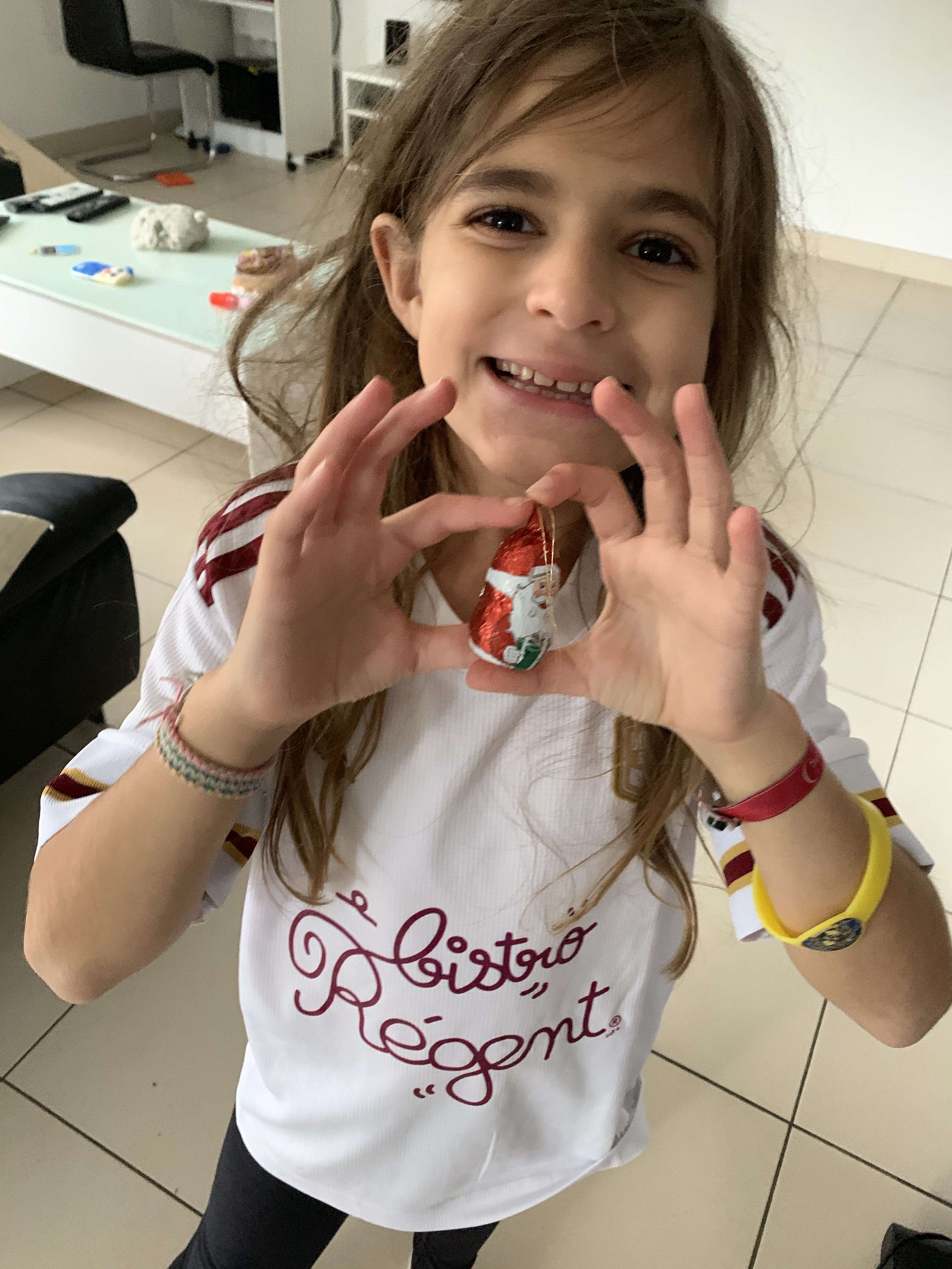En grande gourmande, Camille a aussi immédiatement jeté son dévolu sur les sucettes de Noël : de délicieuses sucettes roses au parfum Tutti Frutti décorées par un cadeau, un bonhomme de neige, un lutin ou un père-noël ont eu énormément de succès! La preuve? Il n’en reste déjà plus!!! D’ailleurs je pense qu’il va falloir que j’en commande quelques unes pour satisfaire la gourmandise de ma Louloute.