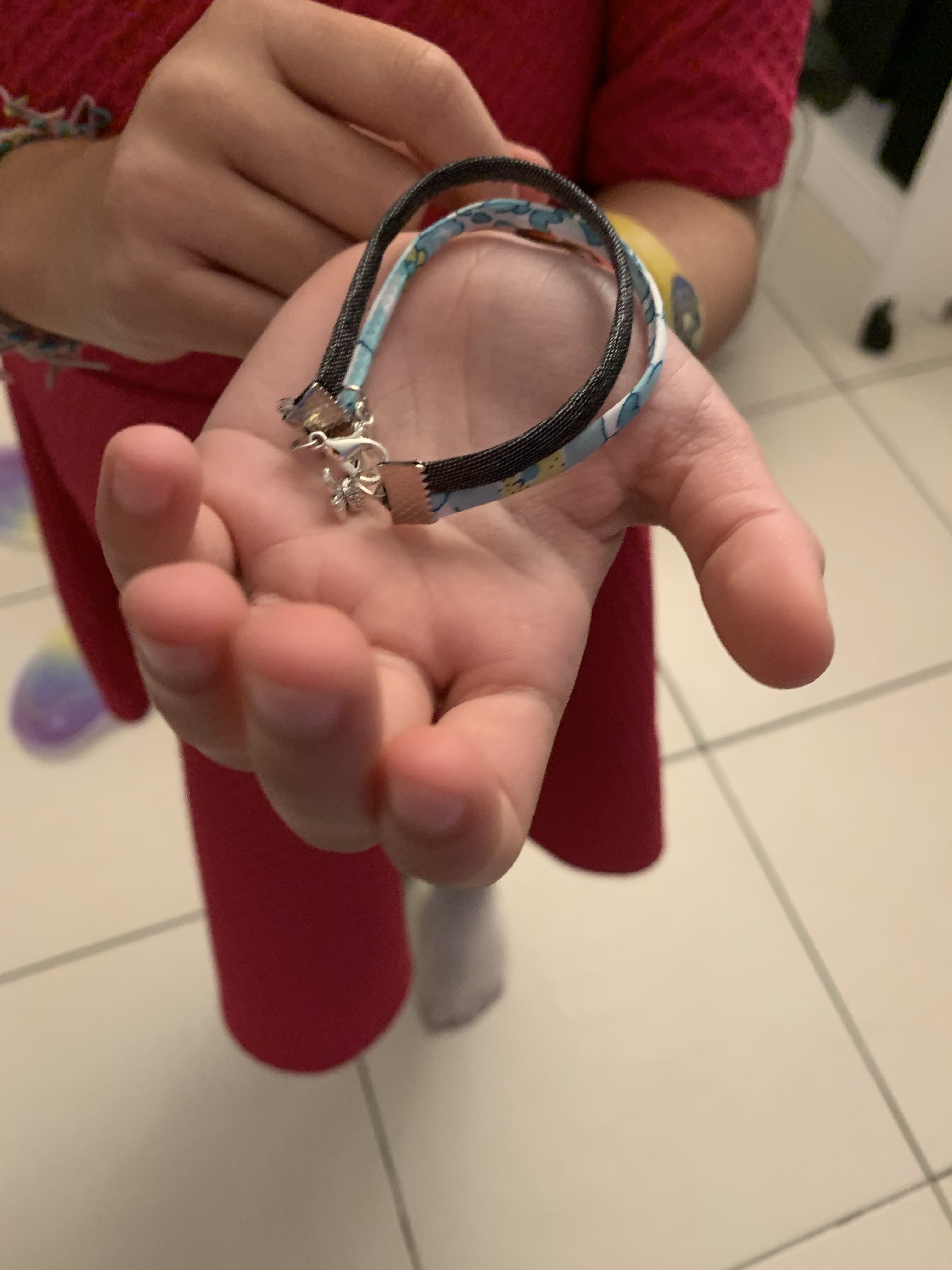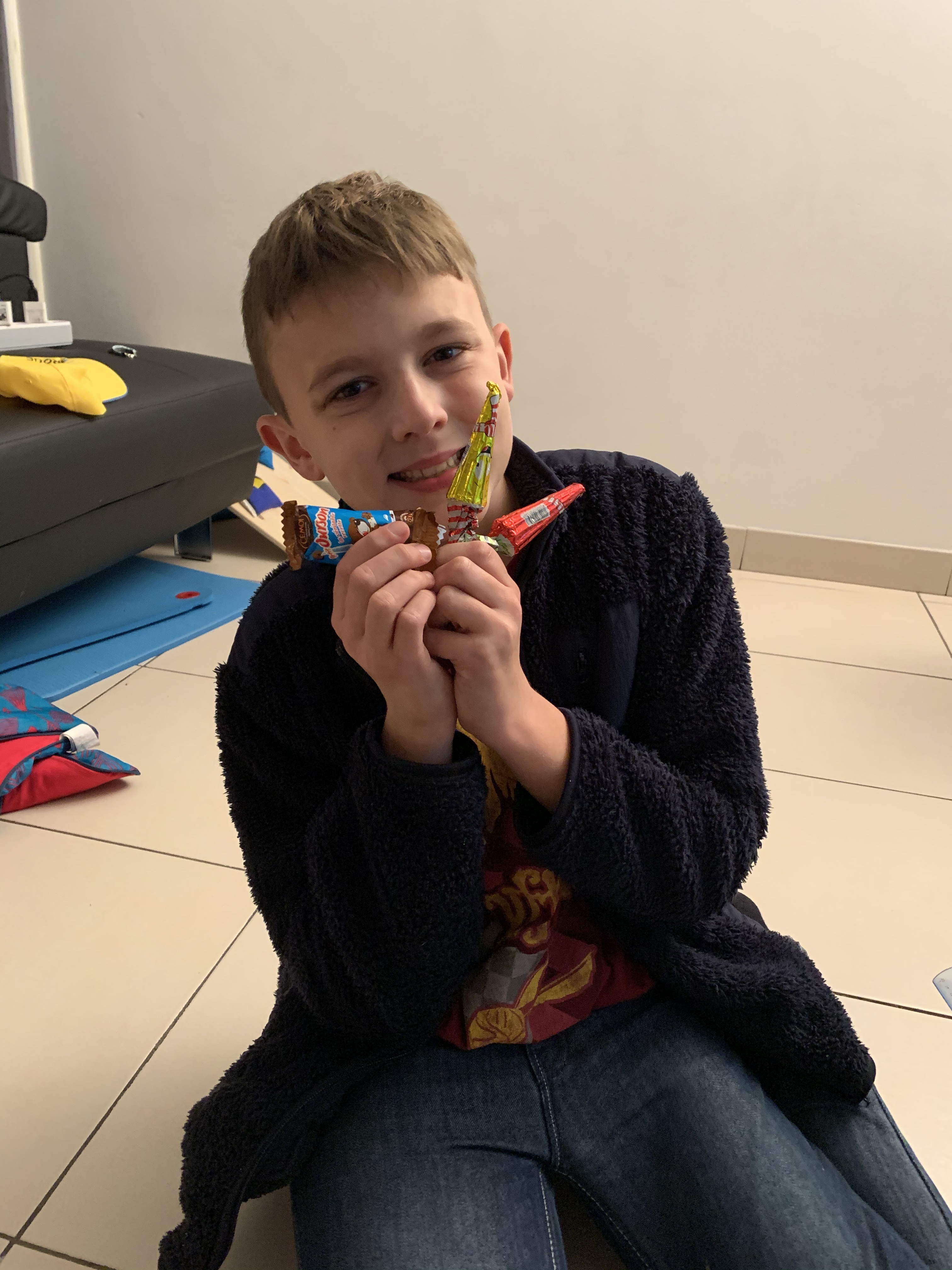 Passons à présent à Maël qui a aussi choisi difficilement les deux produits de la sélection qui lui plaisaient le plus. Pour commencer, il a craqué sur le bracelet peluche renne parce qu’il le trouve super doux et adorable (il existe aussi en version renard et panda). Depuis, il l’a accroché au bord de son lit et il veille donc sur son sommeil! Et en prime, comme pour le petit ours d’Anaïs il est accompagné de son sachet de 75g de délicieuses bouchées en chocolat aux céréales.