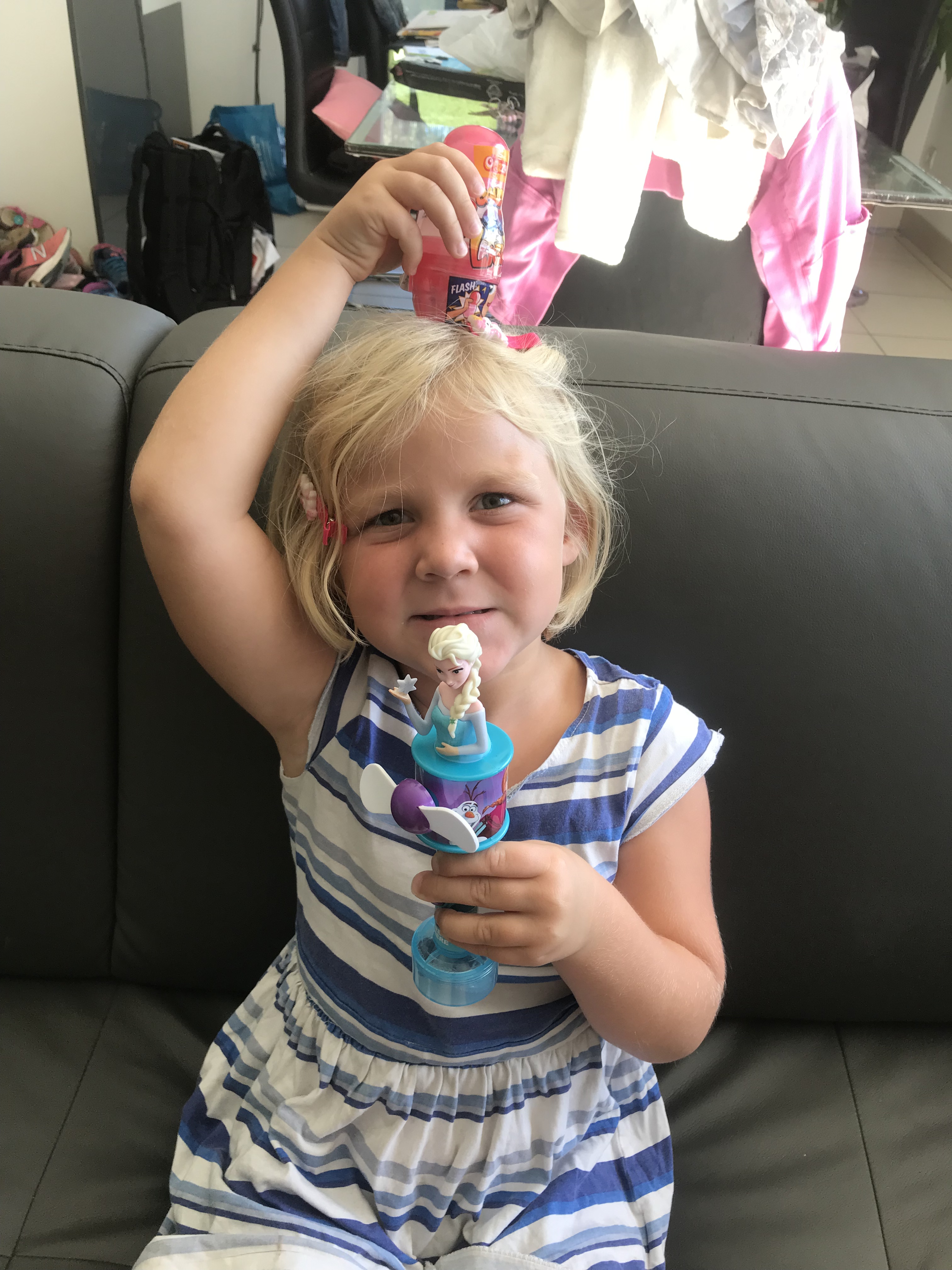 Au tour de miss Camille maintenant qui a totalement craqué sur la boule lumineuse de Noël (vous verrez dans la vidéo que ce n’est pas la seule à avoir adoré!) qui existe aussi en modèle bonhomme de neige. Il faut dire qu’elle est super jolie avec ses lumières et ses flocons tourbillonnants! Et comme d’habitude, elle est aussi accompagnée de petites sucreries: un petit sachet de 6g de délicieux bonbons pour les gourmands…