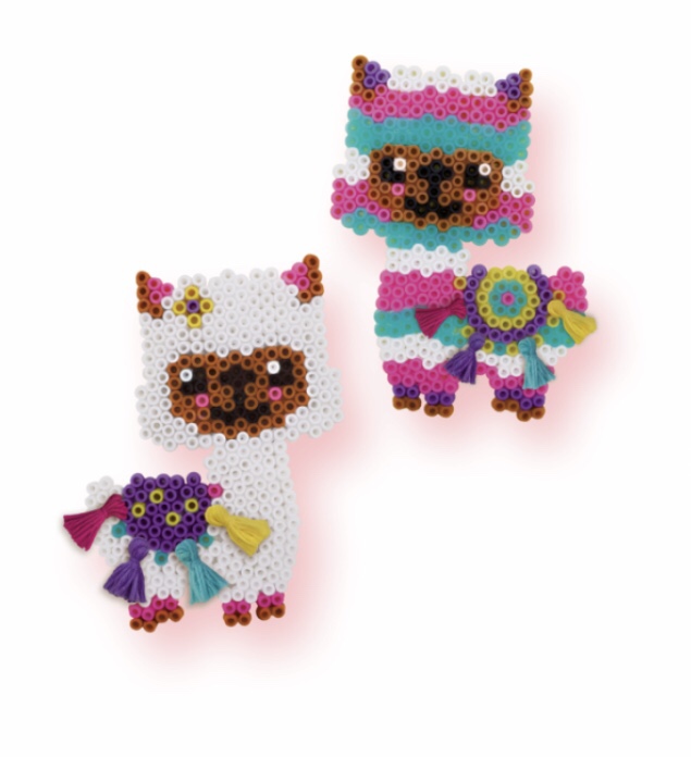 Passons à présent au modèle ALPAGAS qui a conquis Anaïs. En plus du modèle et des 1200 perles à repasser colorées, ce coffret comporte une originalité car il contient quatre couleurs de fil à broder (turquoise, rose, violet et jaune) et une plaque en mousse pour fabriquer des pompons à coller à la fin de la réalisation! Encore une fois pour le moment je n’ai pas d’image en situation à vous montrer car Anaïs n’a pas encore réussi cette étape et refuse pour le moment que son frère et sa sœur l’aident, la canaille!