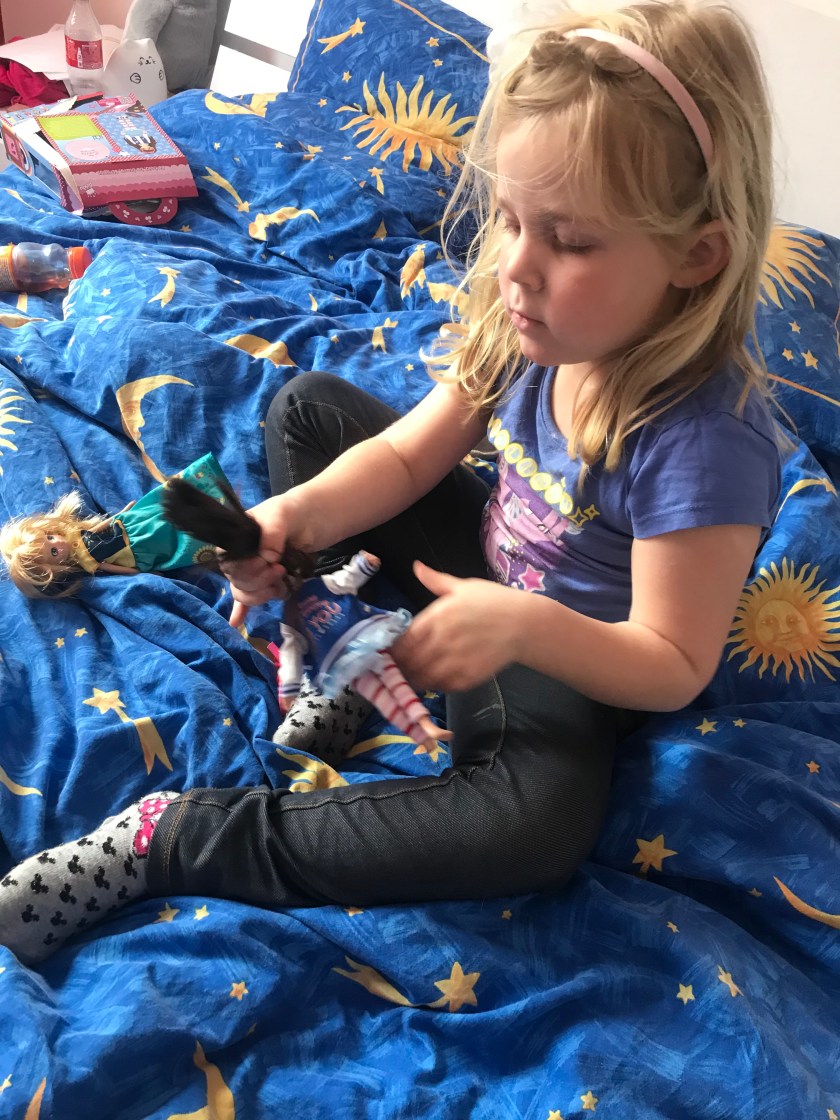 Comme vous pouvez le constater, ces poupées ont un grand succès ici et même après plus d’un an la première est toujours au cœur de leurs jeux ce qui montre qu’elles ne s’en lassent pas. C’est aussi le cas de leurs copines qui s’empressent de venir leur piquer les petites poupées quand elles viennent jouer à la maison. Comme quoi elles font l’unanimité!