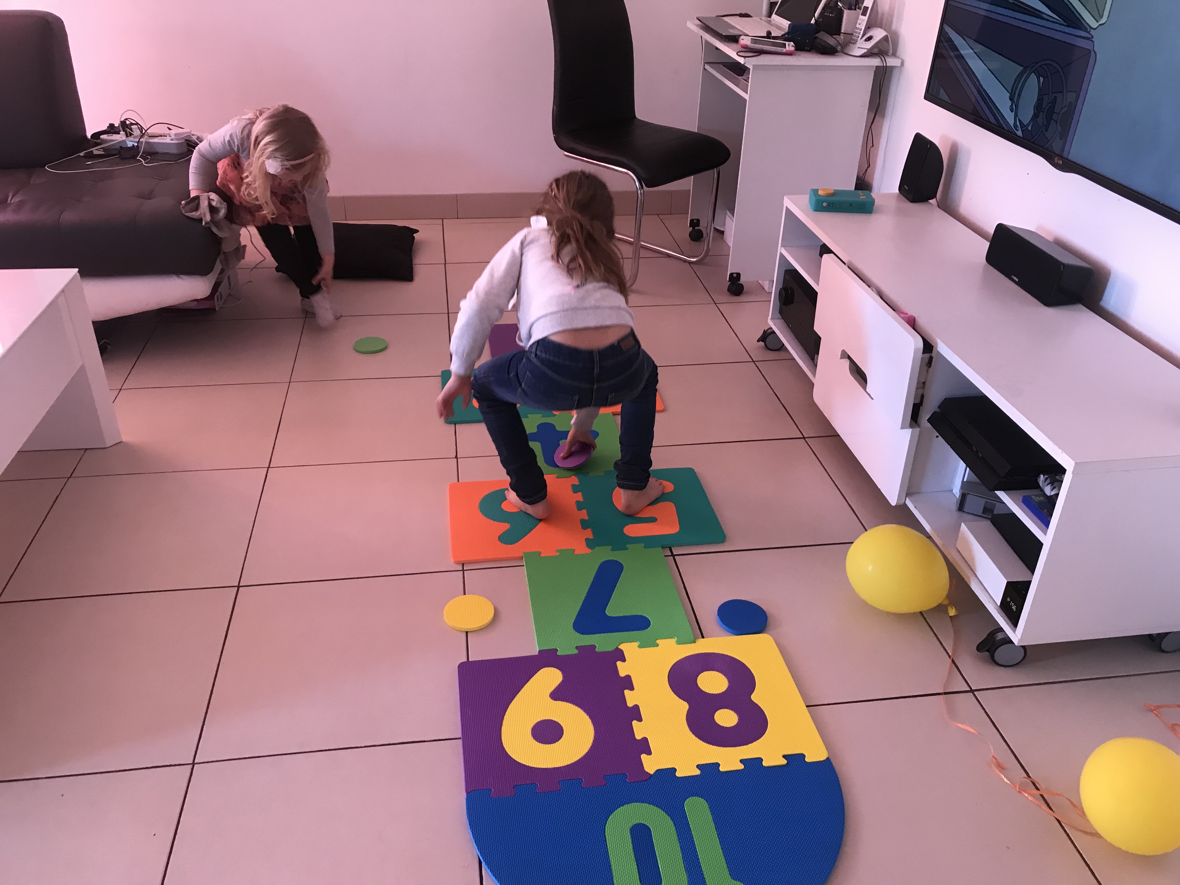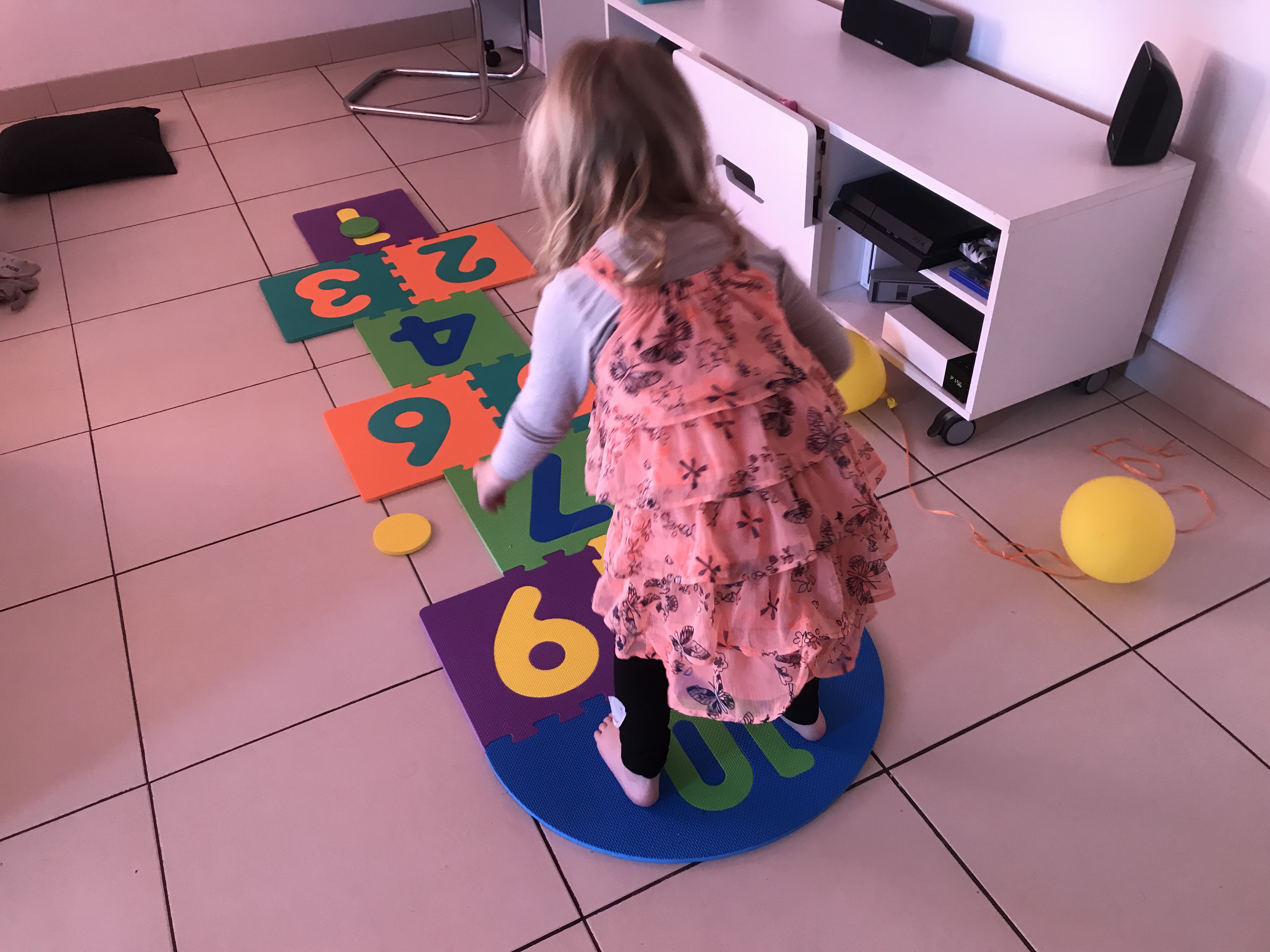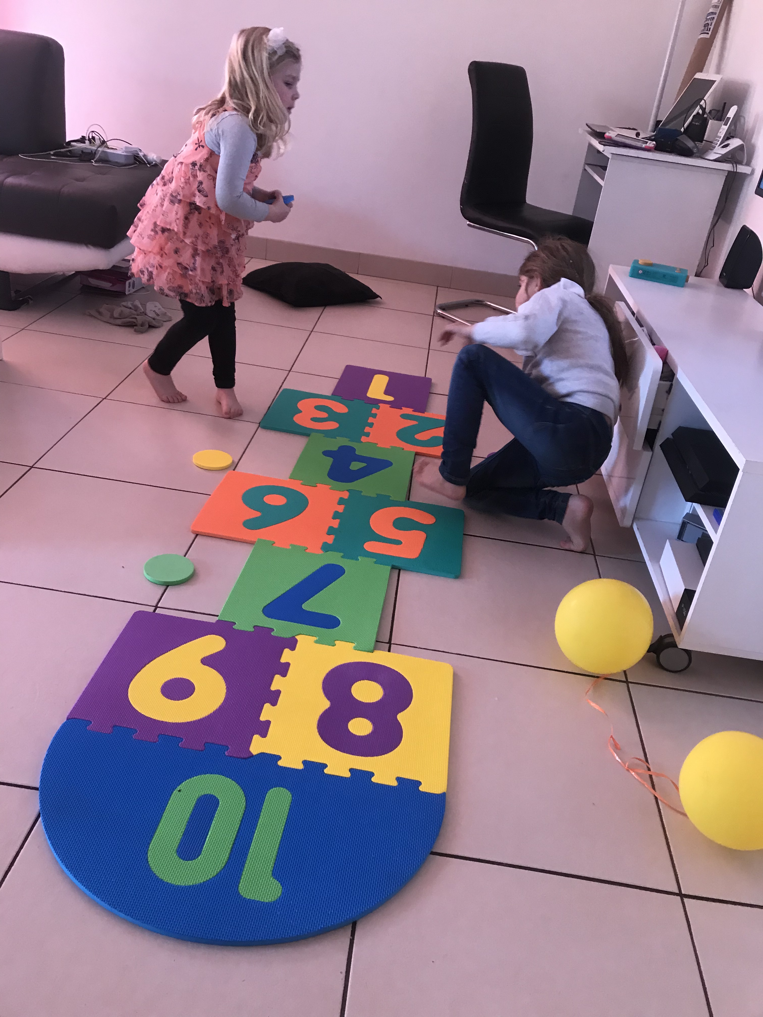 Et enfin, une dernière qualité que lui trouve mes loulous, c’est de pouvoir cacher les numéros partout dans la maison! Comme ça ils ont un jeu qui dure longtemps: d’abord retrouver tous les morceaux, puis faire le puzzle et enfin faire une partie de marelle endiablée! Comme quoi avec peu de choses et pour un budget raisonnable de 19,99 euro, ils sont ravis et créatifs!